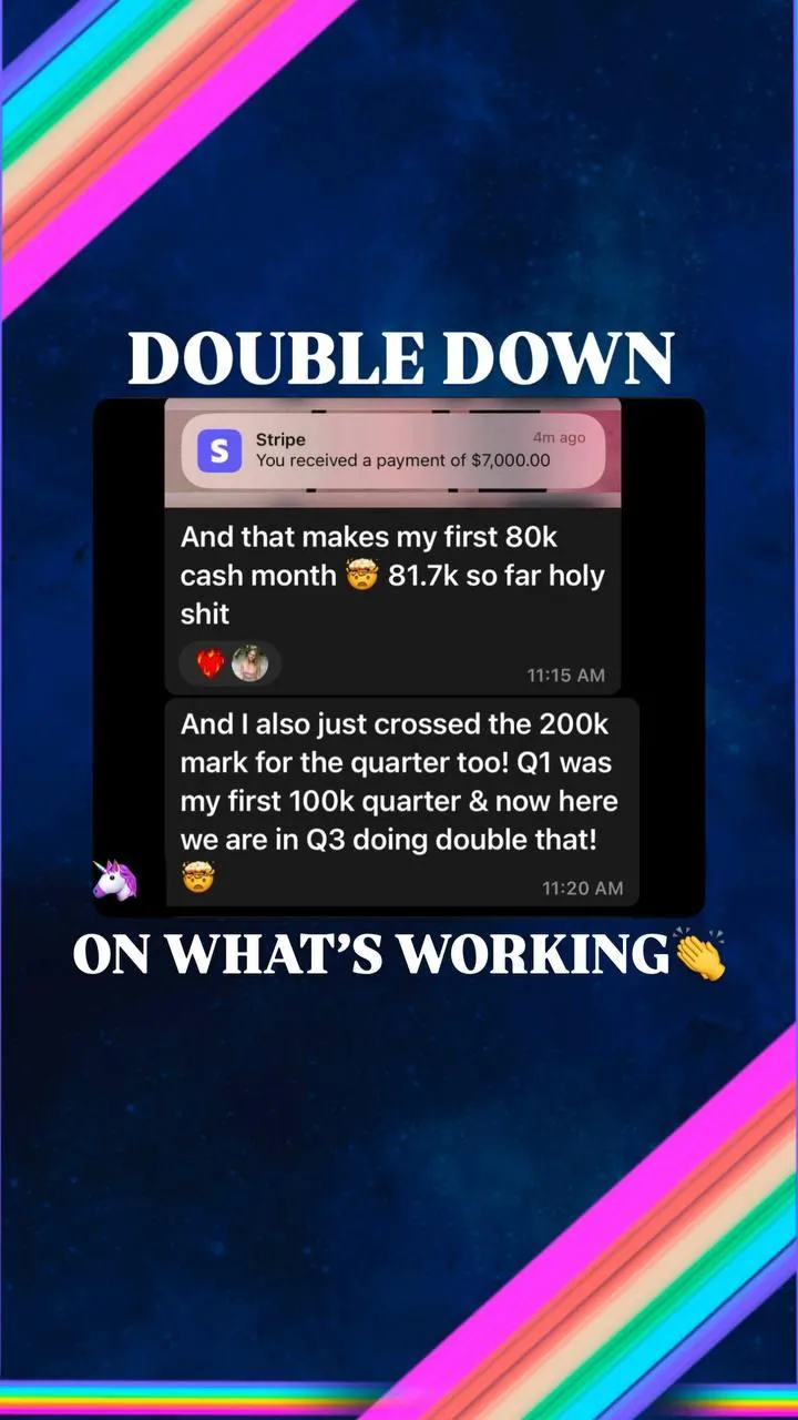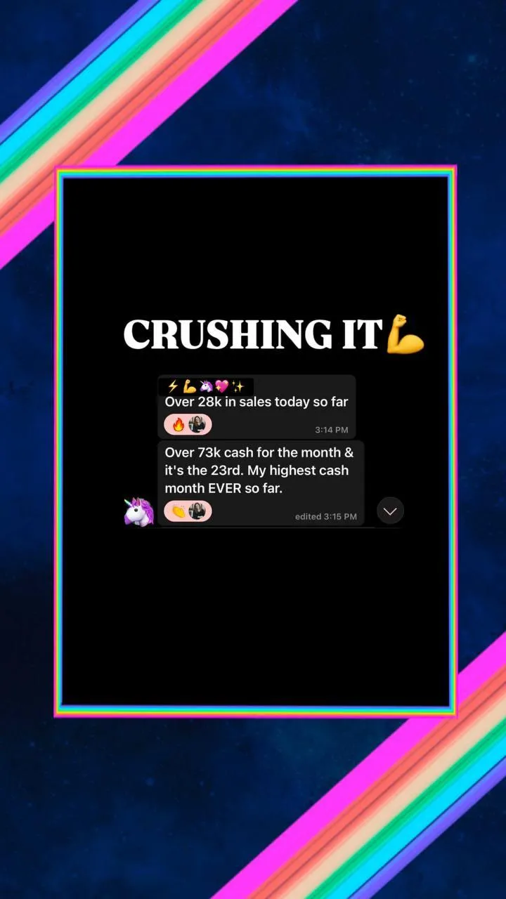 My Unicorn Clients are crushing. Just scroll down for some highlights. Choose to believe in yourself a little bit more each day. This isn't just possible-- it's probable!